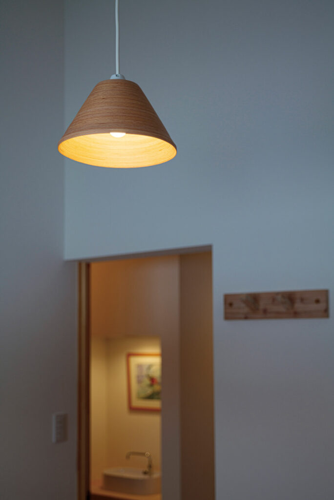 ブナの天然木を使った「BUNACO」の照明が空間のアクセントに