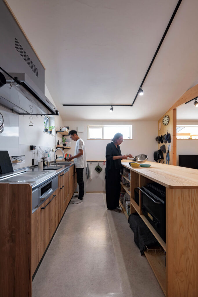 キッチンにも見せる収納を取り入れた。隠す収納よりも省スペースで済むというメリットがある