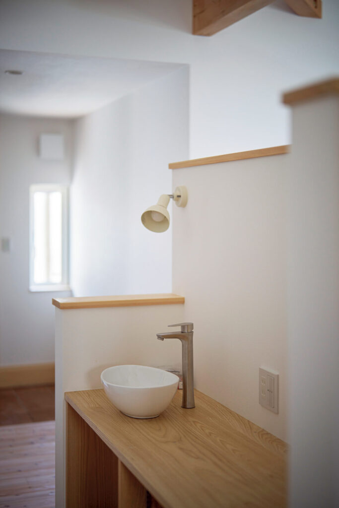 施工中にAさんの要望で、寝室前の収納スペースを造作パウダールームに変更。柔軟な現場対応も、手仕事を大切にする髙山建築ならでは