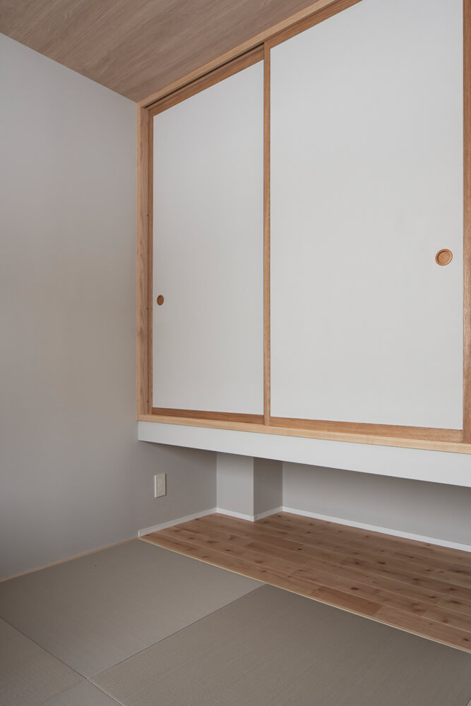 忙しく働く日々でも、ごろんと横になれる場所が欲しいと設けた和室。ほっとくつげる場であり、時には仕事場にも