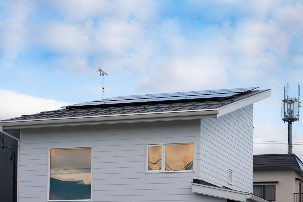 UA値0.28という高い断熱性能を確保し、屋根には太陽光発電パネルも搭載。大切なエネルギーを効率よく使えるように